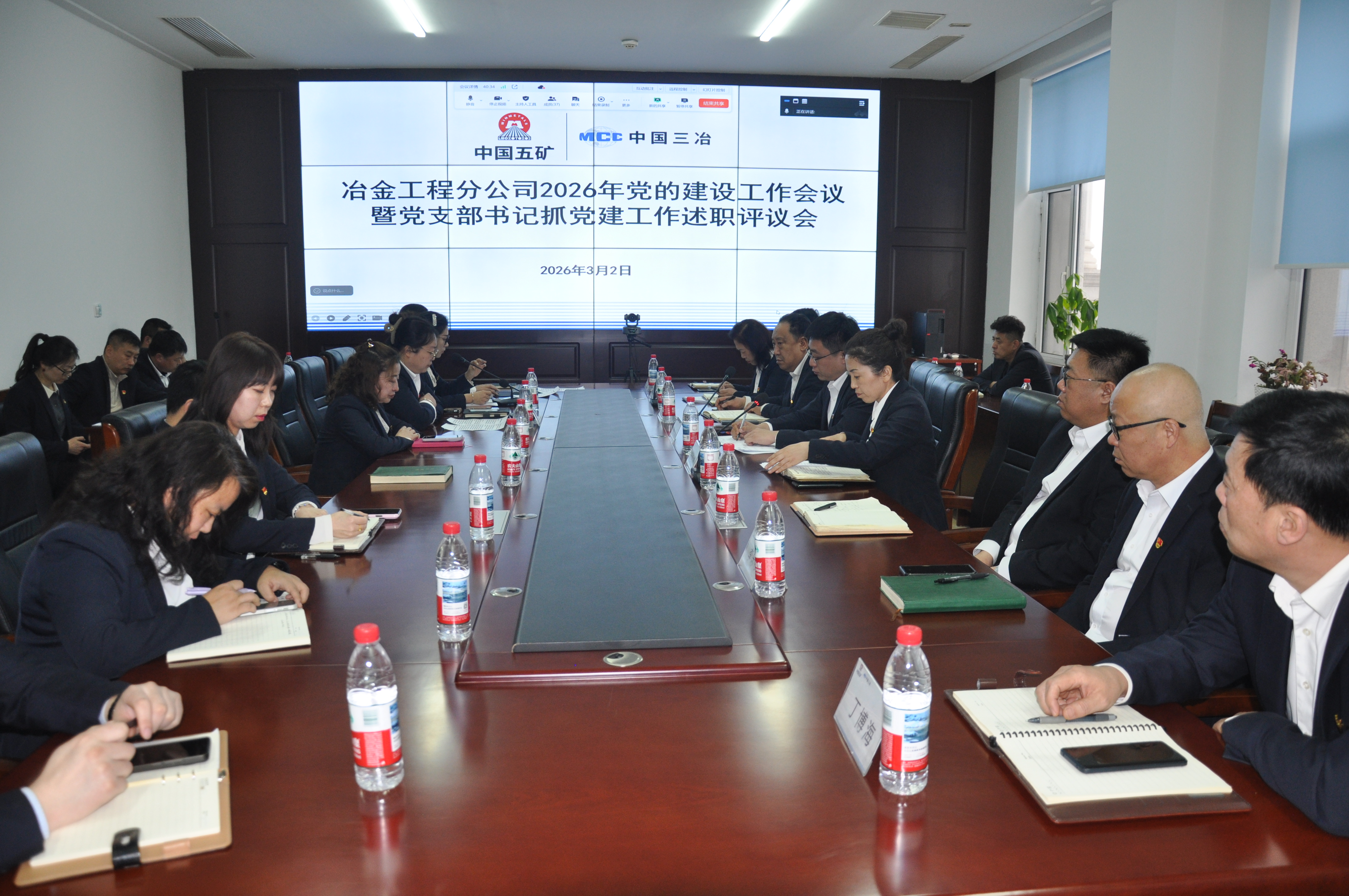 3月2日,冶金工程公司黨委召開2026年黨的建設工作會議暨黨支部書記抓黨建工作述職評議會議,總結基層黨建成效,部署年度重點任務,以高質量黨建引領企業高質量發展。