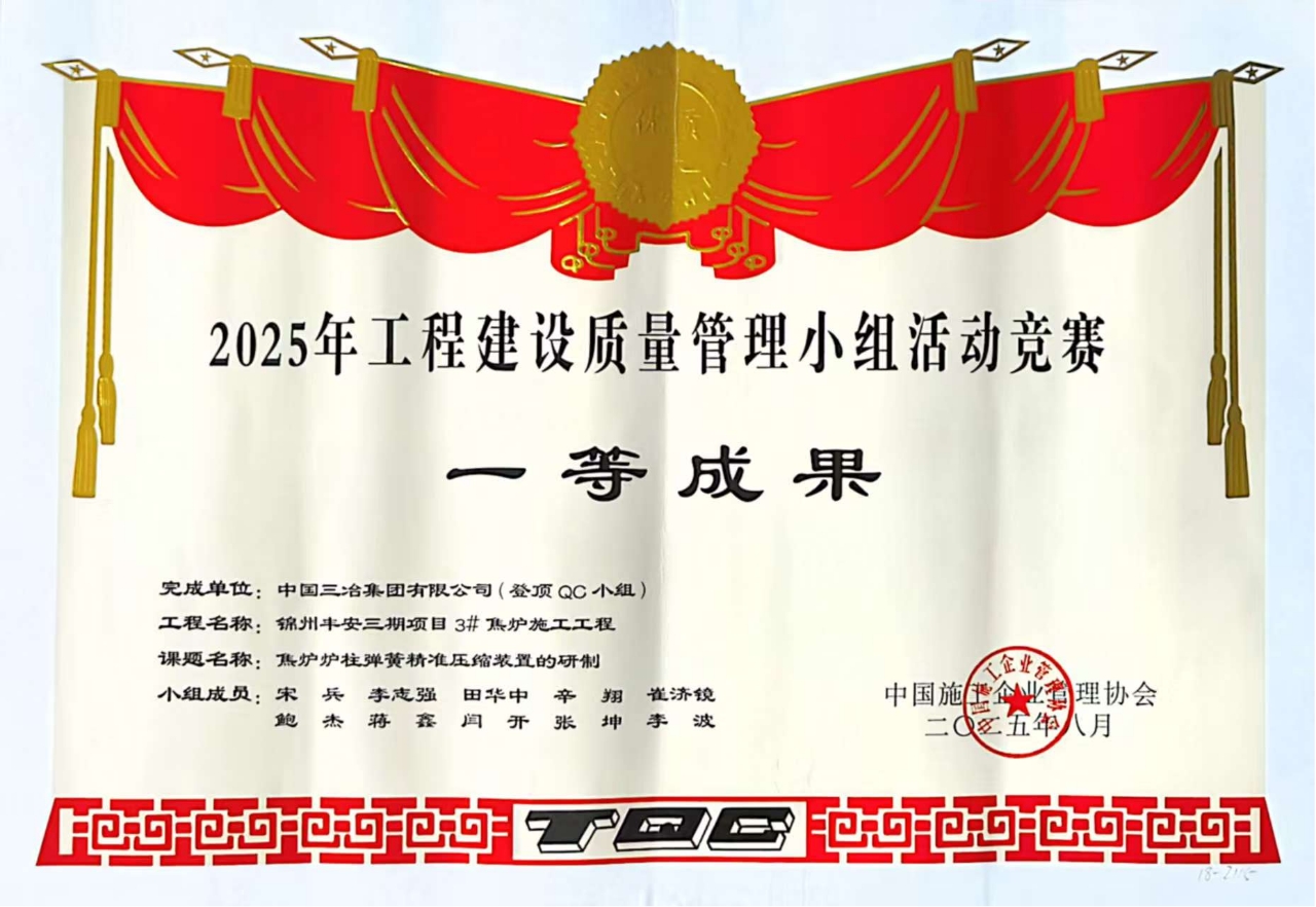 近日,2025年度國家級QC成果大賽圓滿落幕,中國三冶憑借扎實的質量管理實踐與突破性創新成果,在兩項國家級賽事中斬獲佳績。其中,在中建協成果大賽中,一舉摘得一等獎2項、二等獎8項;在中施企協賽事中,贏得一等獎2項、二等獎1項。這份成績單的背后,是中國三冶質量管理水平從"量的積累"到"質的飛躍"的生動印證,更是三冶人踐行“自主創新的引領作用”,以“問題導向的工作思維”突破行業瓶頸的縮影。